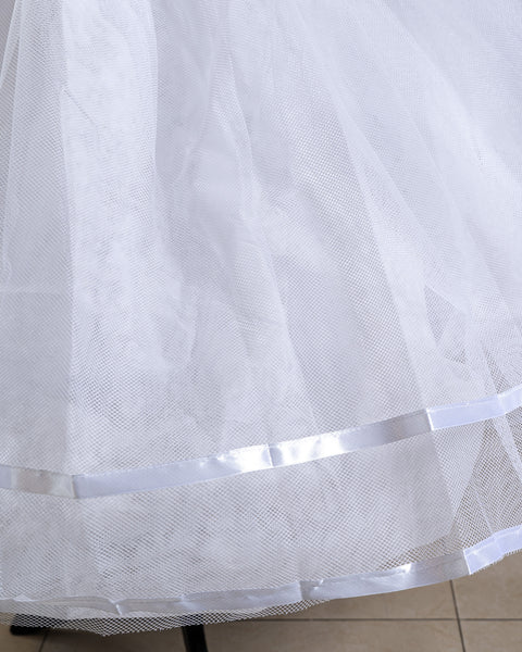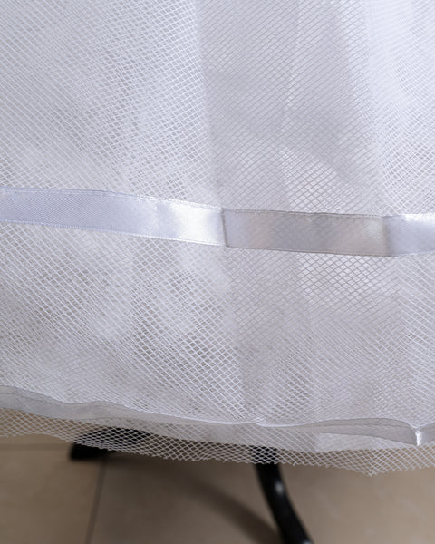Te presentamos la crinolina que está en tendencia en este 2024. Elaborada por nuestros diseñadores, la crinolina de aros con tull junto, hace que los vestidos se vean espectaculares. Cuenta con 4 aros de acero grueso 100% flexible, el acero que se utiliza es ancho de medida 3/4. Después le proporcionamos una capa de tela Tipo Pellon y 2 capas de tela de tull T-70 bordado finamente al borde para evitar el sobrehilado.